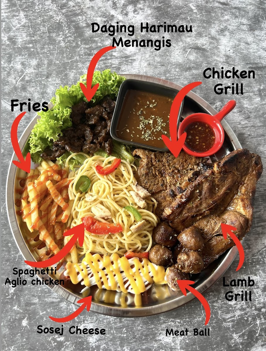 Welcome to BlackRed Cafe Pekan, a delightful gem located in Pekan, Pahang, that serves up tantalizing Western cuisine. Their menu features standout dishes like the Nasi Goreng Blackred, boasting fresh prawns, calamari, and succulent meats—the perfect way to indulge without breaking the bank at just MYR 15.90. The beloved Nasi Daging Harimau Menangis showcases marinated beef bursting with flavor, complemented by homemade Thai sauce for that added zing, while the Nasi Kambing promises tantalizing grilled lamb served with pepper sauce and soup for MYR 17.00.